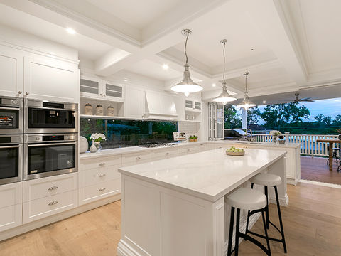 Crafted with inspiration from New York's iconic Hampton Style, Diane St in Yeronga stands as a testament to exquisite family living. Spread over three levels, this 5-bedroom, 3-bathroom residence boasts a serene palette of greys and whites, seamlessly blending with ash-colored flooring. The meticulous attention to detail is evident in every corner, from the inviting front porch to the porthole windows and intricate feature wall paneling. The open-plan living/dining area features a stunning Hamptons-style kitchen with Butler's Pantry, and Calcutta Nuvo benchtops. Flowing seamlessly to the entertainer's deck with a built-in BBQ, the home offers versatile living options, including a media room, rumpus with wet bar, and a self-contained office or guest bedroom leading out to another outdoor entertaining space and a sparkling inground pool.